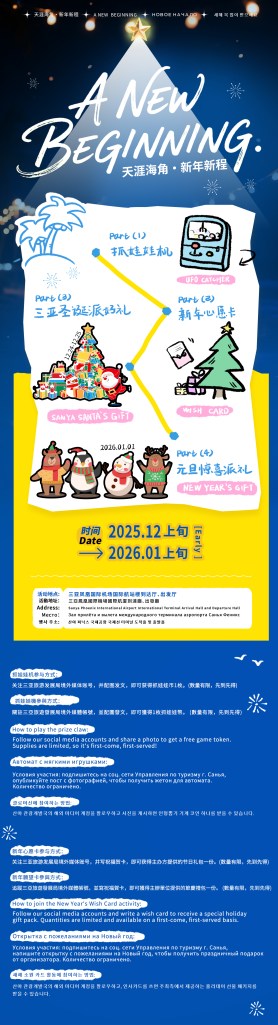 The campaign operates both online and offline. Through partners like Klook and Trip.com, targeted promotions and festive content to engage global audiences. On the ground, the International Terminal of Sanya Phoenix International Airport serves as a welcoming hub from mid-December to early January. Visitors can enjoy holiday decorations, interactive activities, and gifts—creating a memorable first impression.